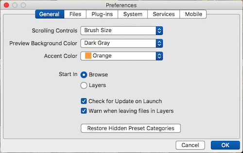 5. Tick and tick for ‘Check for updates’ and ‘Warn when leaving files in layers’.
